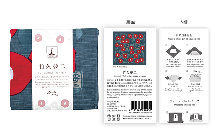 竹久夢二は大正ロマンを代表する画家であり、日本のグラフィックデザインの先駆者です。懐かしさもありながら配色は華やかなので、春のお弁当包みや和の商材やお菓子のギフトラッピングとして需要の高いシリーズです。