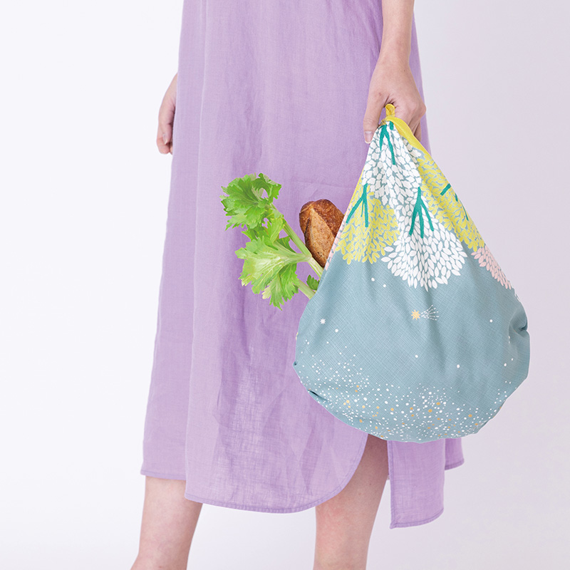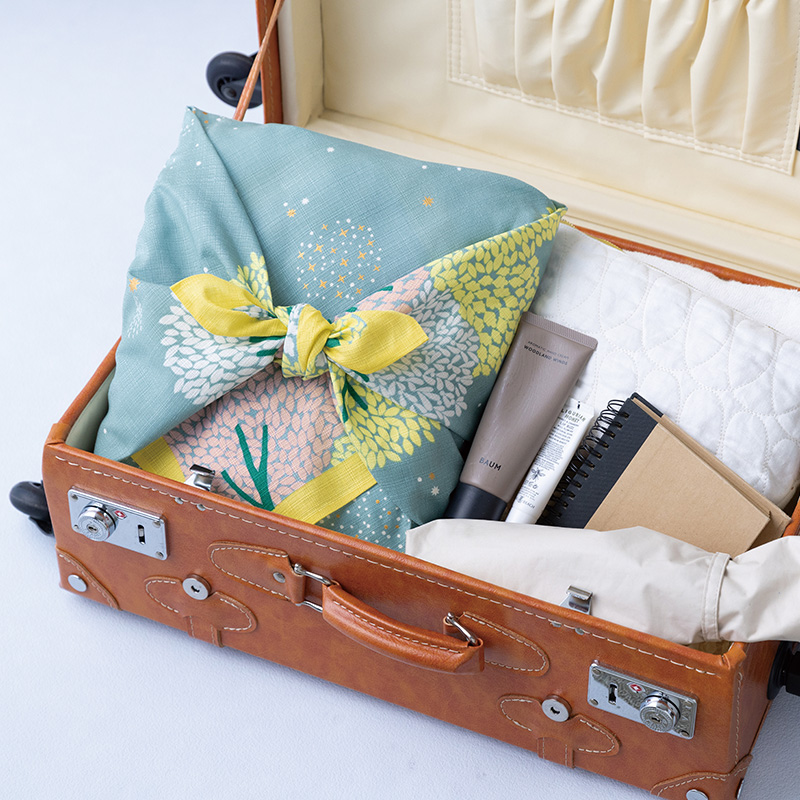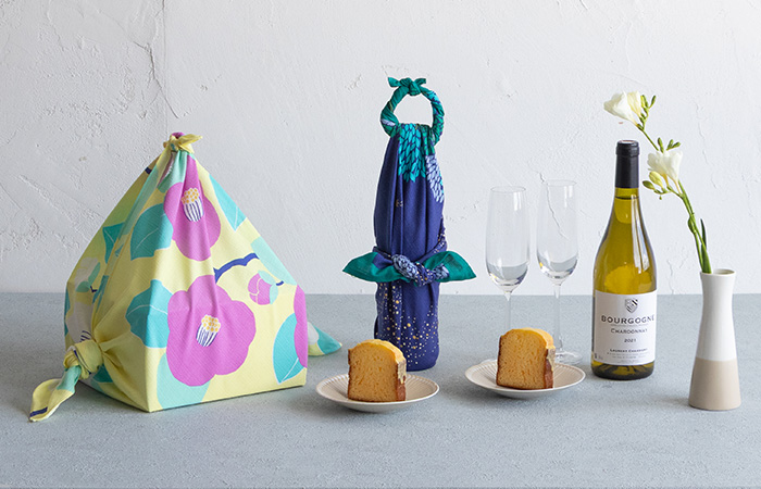 アデリーヌの色彩には、私たちの想像を軽やかに超える独自の感性があります。一見意外に思える配色でありながら、組み合わさることで驚くほど調和し、日常に新鮮な美しさを添えてくれます。菓子折りやお酒のギフトラッピング、モダンなお重包み、エコバッグとして人気です。さらに「ふろしきパッチン」を用いたバッグとしてのファッション提案など、用途の広さも魅力です。各サイズを揃えて展開することで、店頭を華やかに演出できます。