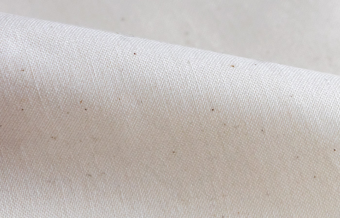 こちらの生地には、小さい黒い点が見受けられますが、不良品ではありません。本シリーズは、余分な薬剤を使用せずに仕上げたオーガニックコットンを使用しています。そのため、綿花由来の黒い点が生地表面に残る場合がありますが、コットンの本来の素朴な色合い(生成り)をより楽しんでいただける仕様です。