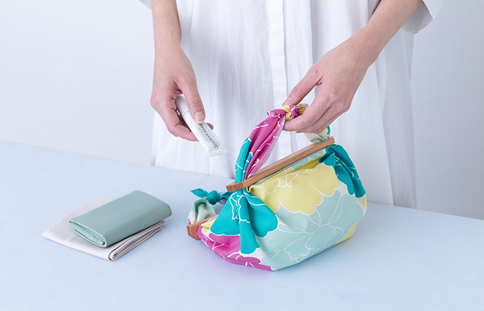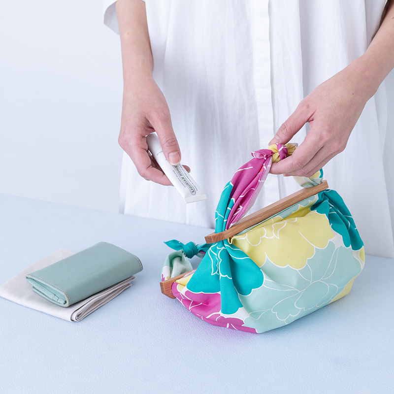 アデリーヌの色彩には、私たちの想像を軽やかに超える独自の感性があります。一見意外に思える配色でありながら、組み合わさることで驚くほど調和し、日常に新鮮な美しさを添えてくれます。お弁当包みとしての定番提案はもちろん、母の日やバレンタインなどのギフトラッピング、さらに「パッチンミニ」を用いたミニバッグとしてのファッション提案など、用途の広さも魅力です。各サイズを揃えて展開することで、店頭を華やかに演出できます。